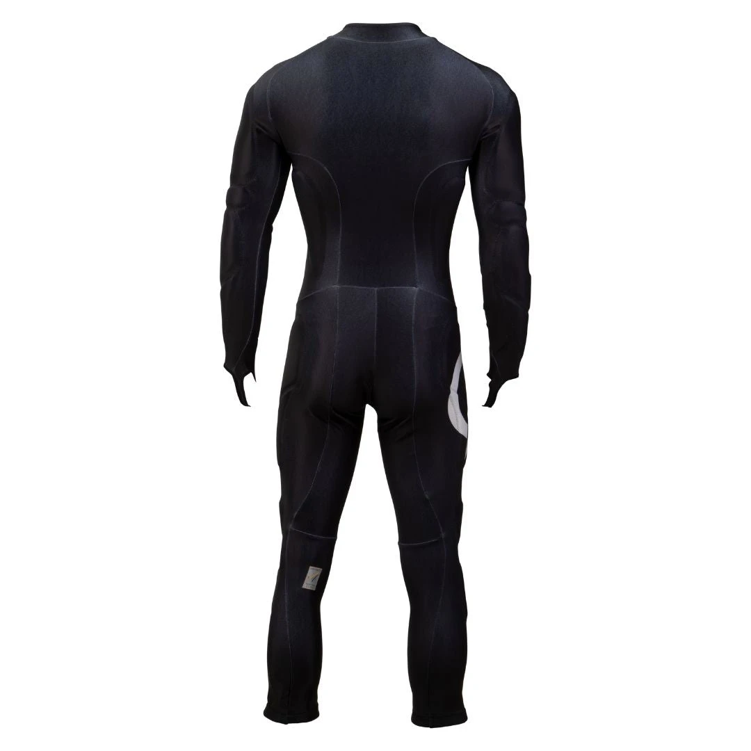 This FIS-approved ski race suit meets the stringent 30ml air porosity requirements. Its innovative 9-panel anatomic design and elastic thread ensure a perfect fit. Additional features include a convenient pass pocket, secure silicone leg grips, and spring-loaded zipper pulls. Elevate your performance with the detachable high-impact pads and a practical thumb anchor strap.